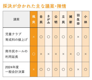多くの自治体では、世帯収入に応じて段階的に利用料を設定したり(本市は生活保護世帯等の免除のみ)、2人目は半額、3人目は無料にしたりするなど、様々な配慮をしています。颯爽の会は反対しましたが、賛成多数で可決され、値上げが決まってしまいました。